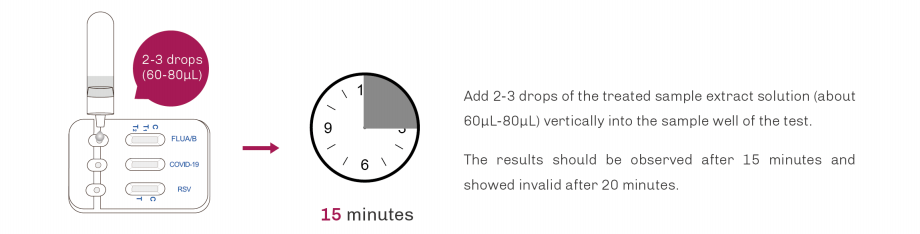 The SARS-CoV-2/Flu A+B/RSV Antigen Rapid Test is intended for in vitroqualitative detection to severe acute respiratory syndrome coronavirus 2 (SARS-CoV-2) antigen, influenza A+B (Flu A+B) antigen and respiratory syncytiavirus (RSV)antigen in human nasopharyngeal swab or oropharyngeal swab samples.